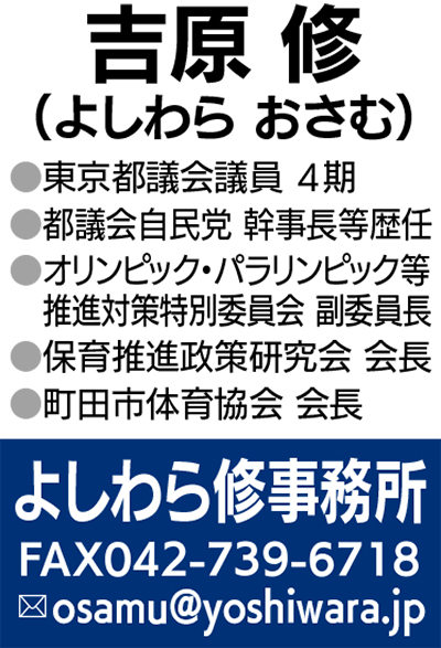 50年前、戦後の厳しい時代の中、先人たちが日々の困難を乗り越え東京五輪を開催し、それをきっかけに現在の豊かな日本を創り上げることができました。今後は、混沌とした世界情勢の中で、次代に繋ぐ新たな道を示すのも東京に課せられた使命です。それらを見越し東京が世界で一番の都市として、世界中から高い評価を得られるよう、私はこれまでの4年間、防災、高齢者・障がい福祉、子育て・教育、景気・雇用等10項目348の政策提言を知事に提出し都民目線の施策を推進してまいりました。今後とも都議会・都政改革を推し進め、都民目線で「新しい東京」をつくります。