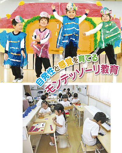 知的好奇心を刺激し、自発性と感覚を育てる「モンテッソーリ教育」を取り入れており、専用の部屋で”お仕事”を様々な教具の中から選び活動する中で、『自ら学び、自分自身を成長させる力』を養う。「その他にも、幼児体育専門の講師による体育指導や外国人講師による英語のレッスンを毎回楽しみながら受けています」と同園。