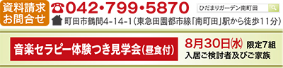 スタッフとして常駐する「音楽セラピスト」によるセラピーは、認知症ケアや日常生活の質の向上、心身とも充実した生活を送るうえでも欠かせないものに。そんな音楽セラピーが体験できる見学会を8月30日(水)に開催。午後0時半〜昼食付。入居検討者及びその家族、7組限定。参加費無料。