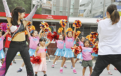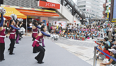 「チアリーダーとして地域を、町田のスポーツを応援したい」―。地域貢献に力を入れるグラヴィスダンス&フィットネス(山田里菜代表)が1周年のジェイコムショップ小田急町田店とコラボして27日、小田急町田駅東口カリヨン広場で初のダンスイベントを開催。カラフルな衣装とにぎやかな音楽に包まれた会場には、たくさんの観客の輪ができていた。