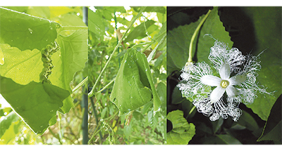 幼虫はウリの葉ばかり食べて、ある程度成長すると葉の付け根を上手にかじって、半分枯れたような感じにして葉の傘を作る。昼間はその中に身を潜めて鳥やカマキリに見つからないようにしている。そしていつも大抵尺取り虫のように背中を持ち上げて、いかにも毒だぞと身構えている。まんまと成長したウリキンウワバの幼虫はサナギとなり、やがて成虫となって羽ばたく。茶系の地味なガだが、私はいつも思う。「チョウやガはだいたい好む草が決まっていて、よく飽きず、文句も言わずにそれだけを食べ続けて、挙句飛ぶことができるようになるなんて」と。残念ながら人間の肉体は、たとえベジタリアンであっても大空に羽ばたくことはできない。