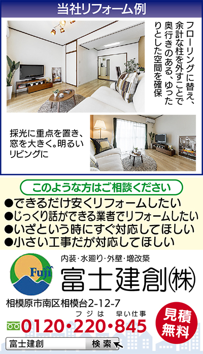 「できるだけ安価でリフォームしたい」「直接じっくり相談したい」「いざという時のトラブルにすぐ対応してほしい」などで困っているなら、相模原、町田地域で実績を残すリフォーム専門業者「富士建創」へ。