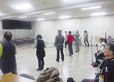 心身の健康を目指して吹き矢を吹いている町田吹き矢健康会(内藤幹弘代表)は毎週木曜日の午後、気功呼吸法とヒーリング法を実践して健康増進と自己活性に努めている。「ゆったりとした柔らか呼吸で心身をリラックス。ヒーリングのBGMに合わせて軽い動きで吹き矢を吹きます。一本のローソクの火を消せる人ならどなたでも出来ますのでお気軽に」と内藤代表。