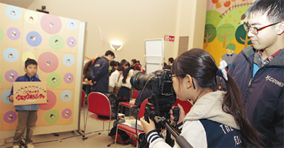 当日、店員側と客側合わせて約800人が参加。子どもたちはハローワークでポップコーン屋や缶バッジ屋、木の実屋など仕事を選び、業務に従事した。写真屋では実際に一眼レフカメラを使い、カメラマンとして撮影、写真をプリントして渡す体験も=写真。体験した女子児童(10)は「大きなカメラを動かしてきれいに撮るのが難しかった」と話し、「うまく撮れるとうれしい」と笑顔を見せた。為石園長は「みんな楽しそうだった。子どもの体験は学びの場。成長につながる」と話していた。