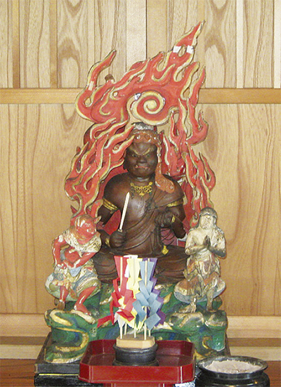 初不動にあたる当日は、本堂が開扉され、お不動様が御開帳される。また、だるまの販売も行われる「だるま市」も開催。ほかに旧年のだるまやお札などのお焚き上げも受け付ける。午前11時。