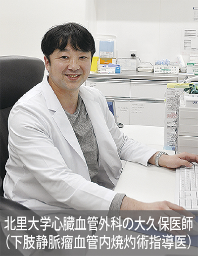 治療方針は患者の症状の程度と要望にあわせて決定。先進的高周波治療装置(ラジオ波)による血管内焼灼術やストリッピング術、硬化療法など様々な日帰り手術(保険診療)に対応する。同外来を担当する大久保博世医師は「低侵襲治療である下肢静脈瘤血管内焼灼術など身体への負担が少ない治療法をお勧めします。安心して受診におこし下さい」と呼びかける。