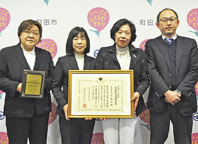 市内で特別養護老人ホームなどの介護事業を行う社会福祉法人竹清会(矢沢きよみ理事長)はこのほど、平成29年度東京都女性活躍推進大賞(医療・福祉分野)を受賞した。9日には石阪丈一町田市長を表敬訪問し、その報告を行った。