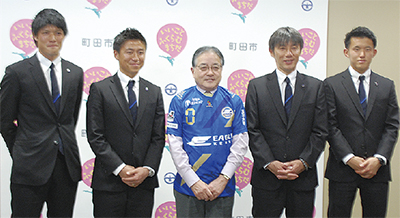2018年J2リーグ開幕戦、アウェーでの京都サンガF.C戦に2-0で快勝したFC町田ゼルビアが2日、市長を表敬訪問した。