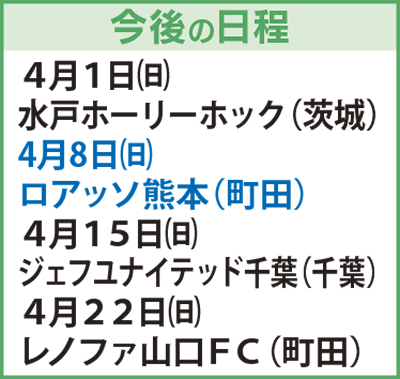 次節は4月1日(日)の水戸ホーリーホック戦のアウェーゲームで、次のホーム町田での試合は4月8日(日)のロアッソ熊本戦だ。ホーム戦のチケットは市内の郵便局で購入できる。
