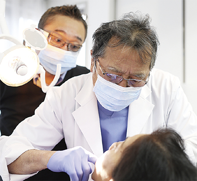 大滝正行院長は専門とする義歯治療に関し、現状に満足することなく常に向上心を持って研鑽を続けてきた。ヨーロッパの先進技術を導入した精密義歯による治療に注力し、そのための海外研修にも積極的に参加している。父である院長とともに同院の患者を支える大滝絵梨花副院長は、歯科用マイクロスコープを使った根管治療が専門ながら、精密義歯の利点を最大限に生かすため高齢者の口腔機能を改善する取組みにも注力。また、女性ならではの細やかさで優しく対応してくれる。