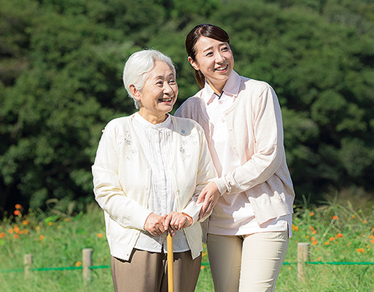 小田急小田原線「町田」駅北口より徒歩10分にある「未来倶楽部 町田」。ここでも看護職員24時間常駐、協力医療機関との緊密な医療連携、徹底した教育を受けたスタッフのもと、多様な医療ニーズ、終末期ケア、緩和ケアなど医療依存度の高い人が安心して過ごせる環境を実現する。