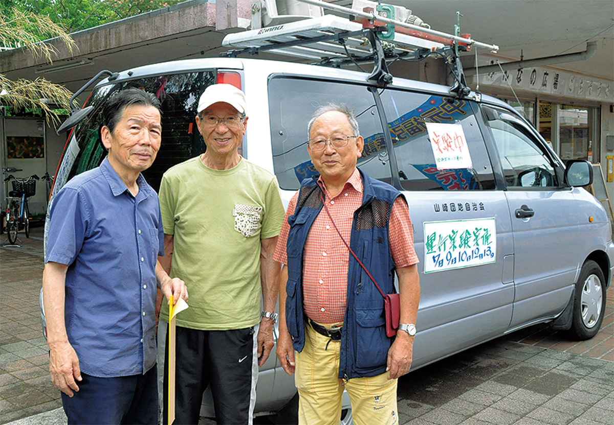 山崎団地自治会は7月7日から13日までの間、高齢化が進む山崎団地内で、団地周回バスを運行させる実験を行った。買い物の行き帰りの人や足の弱った人、車を持たず移動が不便な人などが対象だ。