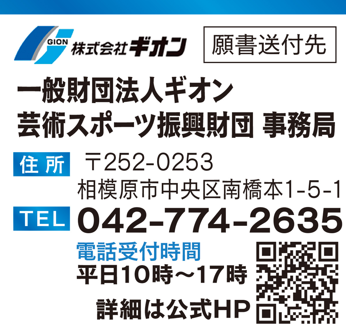 昨年、同財団設立時に設けられた「ギオン芸術スポーツ振興奨学金」は神奈川県、東京都に所在する大学の学部生、大学院生が対象。奨学金の返済義務はなく、1人につき20万円が給付される。今回は両分野併せて30人以内の募集となっている。