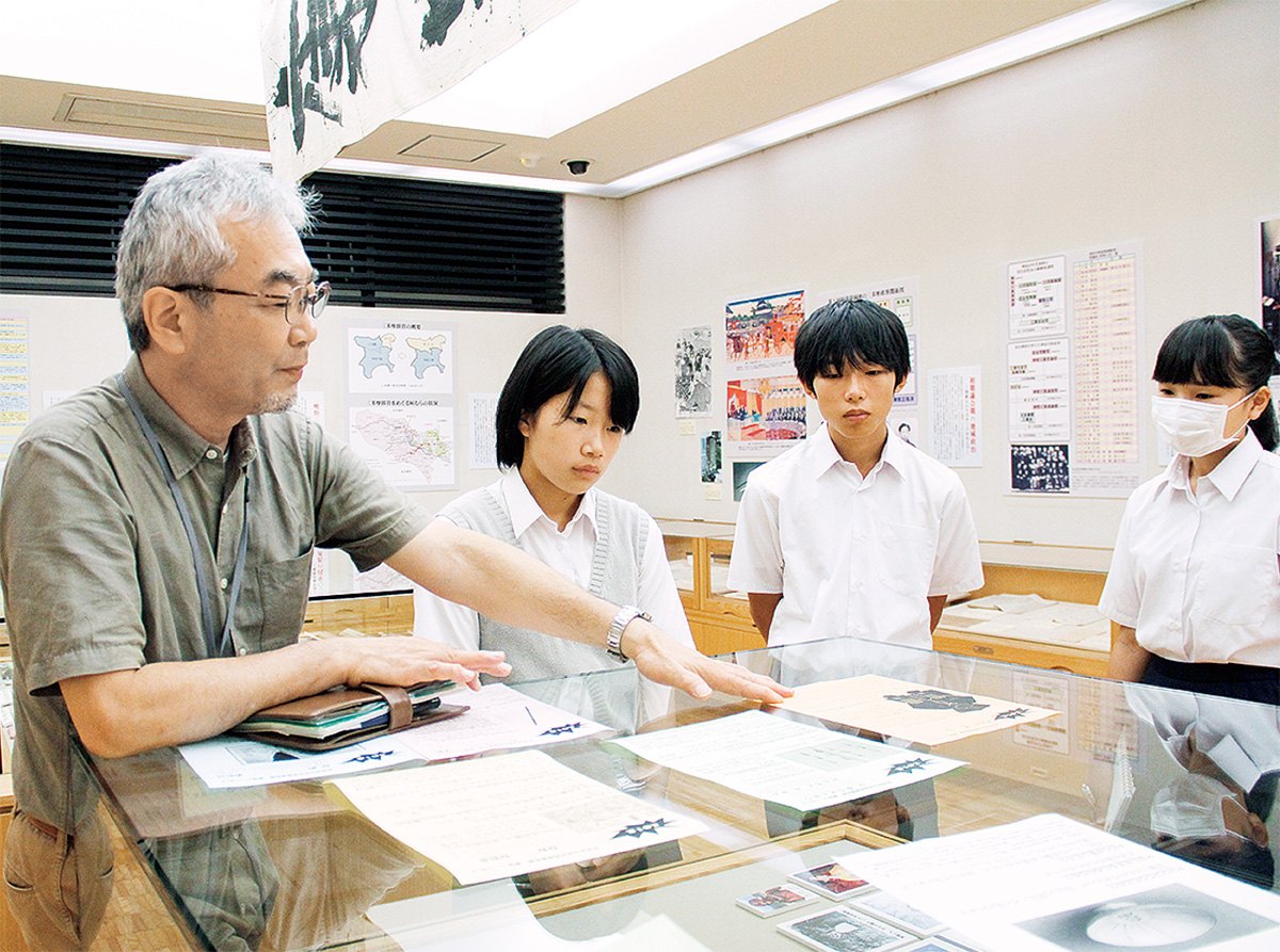生徒らに協力した同館学芸担当の杉山弘さんは「自由民権の話を理論で伝えるのはハードルが高い。資料館にあるレリーフを中心に話を展開することで、中学生にも分かりやすく説明ができた。レリーフはもともとあるものだが、これまで語ることは少なく、中学生が来てくれたからこその発見です。自分たちで見て、質問を重ねてようやく理解できるものだと思う。今回のことをきっかけに興味を持ってもらい、まずは足を運んでもらいたい。そして学芸員に気軽に声を掛けてもらえれば」と話す。