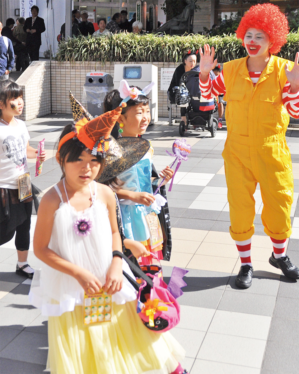 好天に恵まれた10月27日、各地でハロウィーンイベントが催された。カリヨン広場にもスタンプやお菓子を求めて、思い思いの仮装をした子どもたちが集まった=写真。