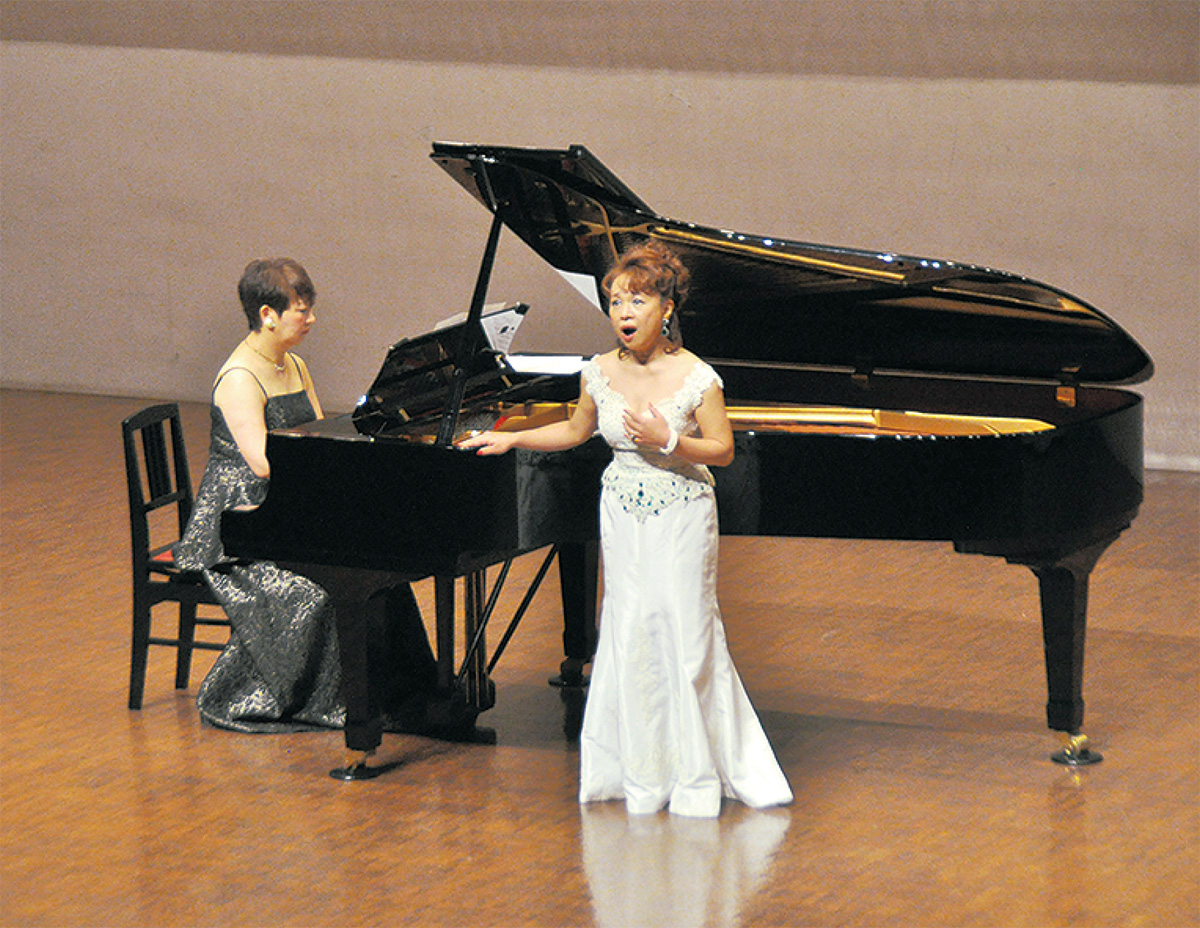 ふれあいコンサートには、ソプラノ佐藤美枝子さんとピアニスト服部容子さんが出演し、素敵な演奏を披露した。会場には100人を超える来場者が参集し、演奏ごとに大きな拍手と歓声で会場は包まれた。