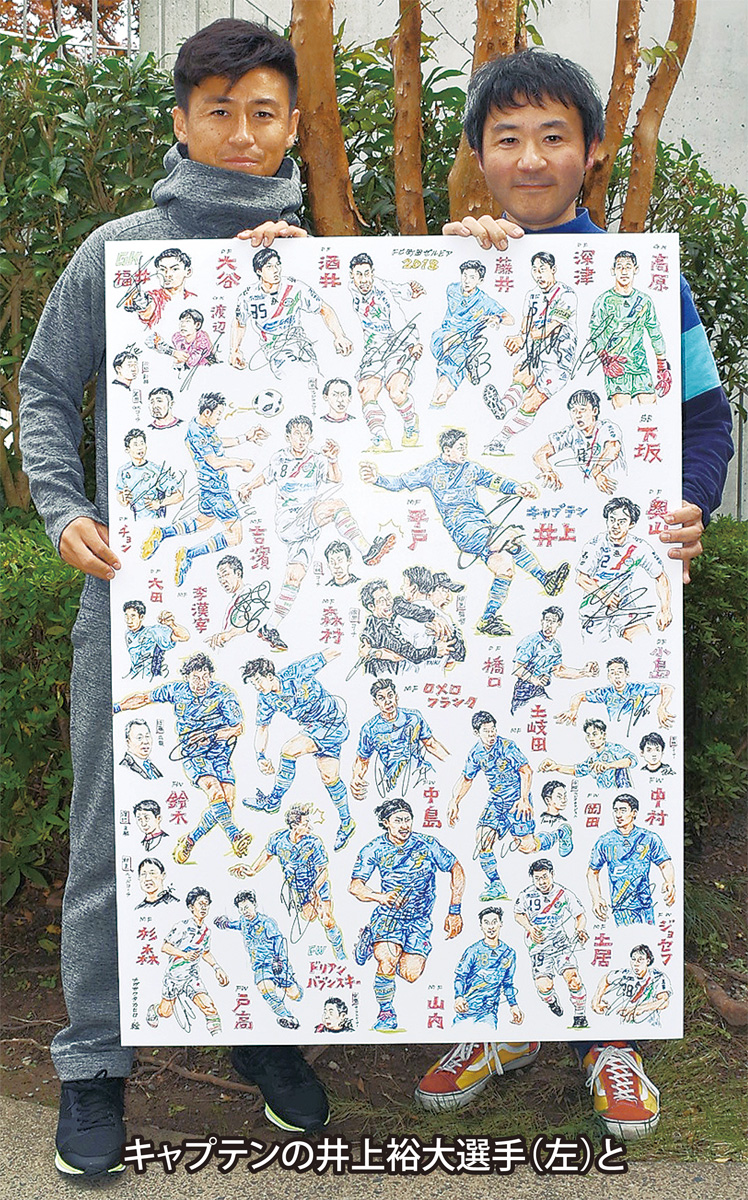 そう信じて、今シーズンも毎試合ハイライトシーンを描き、そうすることでチームの力になろうとしてきました。先日、優勝の可能性が残る最終戦を前に「選手を後押ししたい!」と思い、全選手がそろうポスターを制作、選手の皆さんにお渡ししました。来季はJ1入りを目指すシーズンになると思います。今年以上に全力で応援するつもりです!ながさわたかひろ