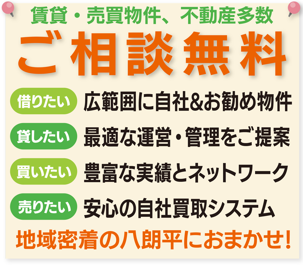 「希望通りの物件がない」「とにかく急いで探している」という顧客にも熟練スタッフが手厚くフォロー。南地域だけでなく広範囲に、土地や物件など豊富なネットワークで希望を叶えてくれる。
