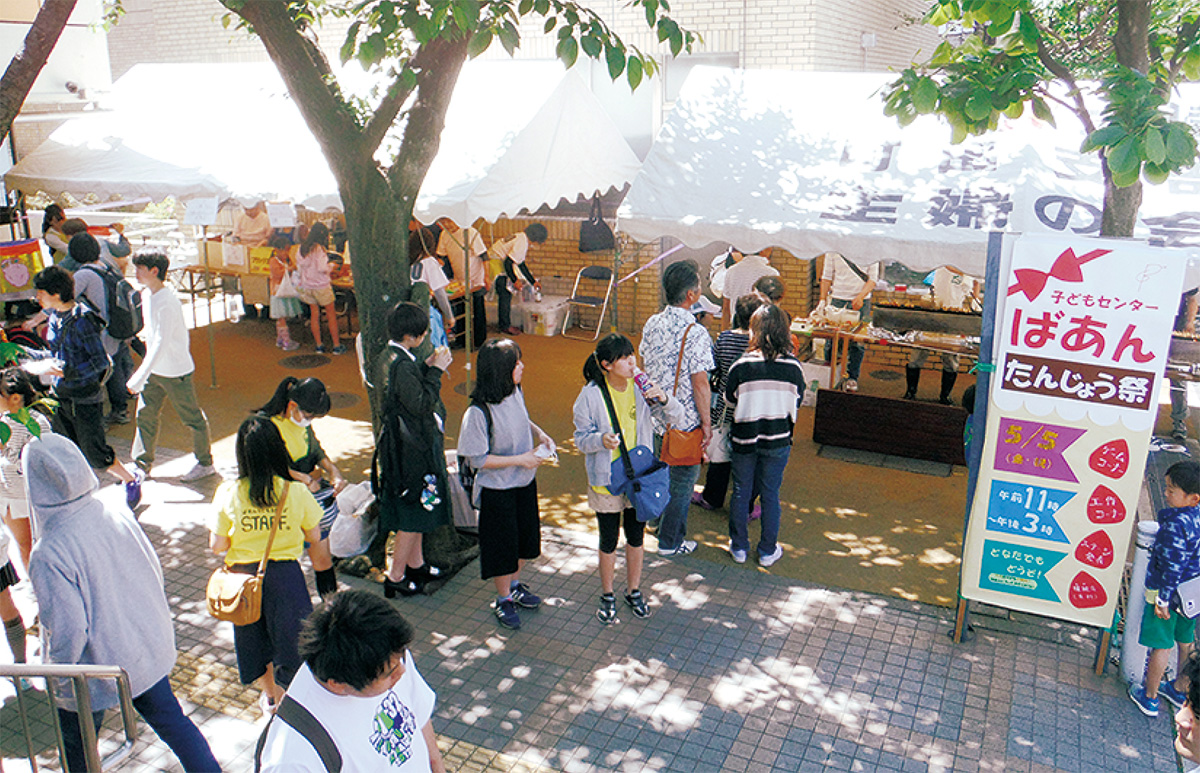 毎年5〜600人が訪れるというたんじょう祭。節目となる今年は、ばあんを利用している小中高生からなる子ども委員会が企画した「おばけやしき」が過去最大規模で登場。ほかにもゲームコーナーやステージ発表、工作コーナーなど。焼きそばなどの模擬店の出店も。