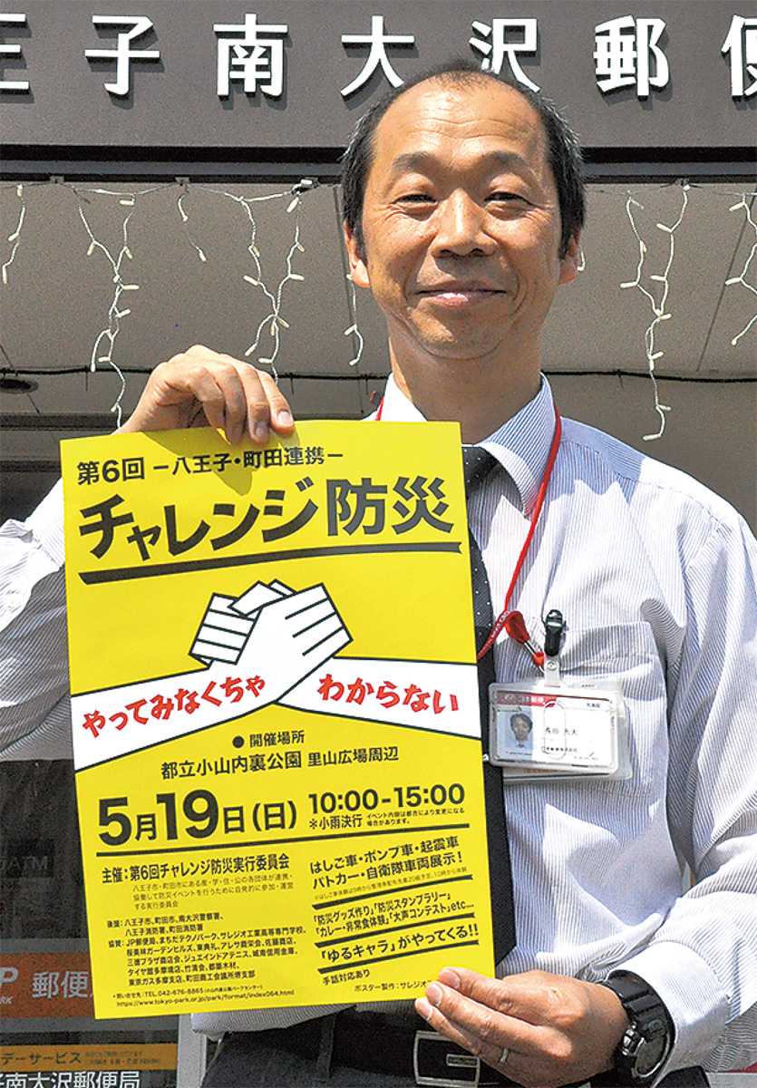 全国の郵便局長会が取り組む「防災士」の資格を持ち、ボランティア活動や啓発に尽力。「地域密着」をモットーにする職場で、業務中も郵便局を訪れる人たちとの会話を大切にしてきた。「災害があった時、助け合える顔見知りを増やすことが重要。チャレンジ防災は様々な業種や異なる自治体の警察・消防が協力する珍しいイベント。多くの人たちが繋がるきっかけなれば」と力を込める。