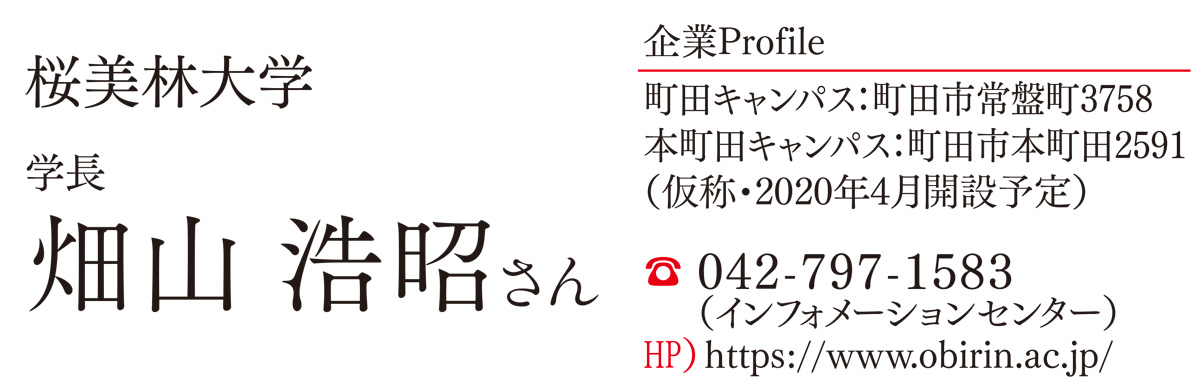 2018年に就任した畑山浩昭学長は「本学では学群制を導入して、リベラルアーツ系とプロフェッショナルアーツ系の学群を作りました。大学全体の理念に基づきつつ、学群ごとに特色ある教育や研究を行える体制を構築。今年4月に開設した新宿キャンパス(ビジネスマネジメント学群)に続き、学群を拠点化することで各学群の教育を強化しています。芸術文化学群は、学びのステージを4専修から3専修に再編。入学定員も150人増加させ400人へと大幅増員。そして、現在町田キャンパス内に点在している芸術文化学群の校舎がひとつにまとまることで、学群制の特徴をさらに活かすことができます」と構想を語る。「大学にはいくつかの重要な使命があります。ひとつは研究の成果を社会の発展のために還元することです。もうひとつは、教育を通して、人間を育てること。そしてさらに、地域や世界の平和のために機能する拠り所となることです」とも。