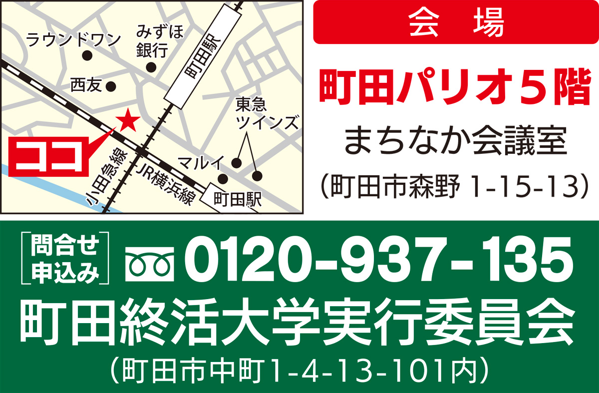 第3弾は9月12日(木)予定。問合せは町田終活大学実行委員会(左記)へ。