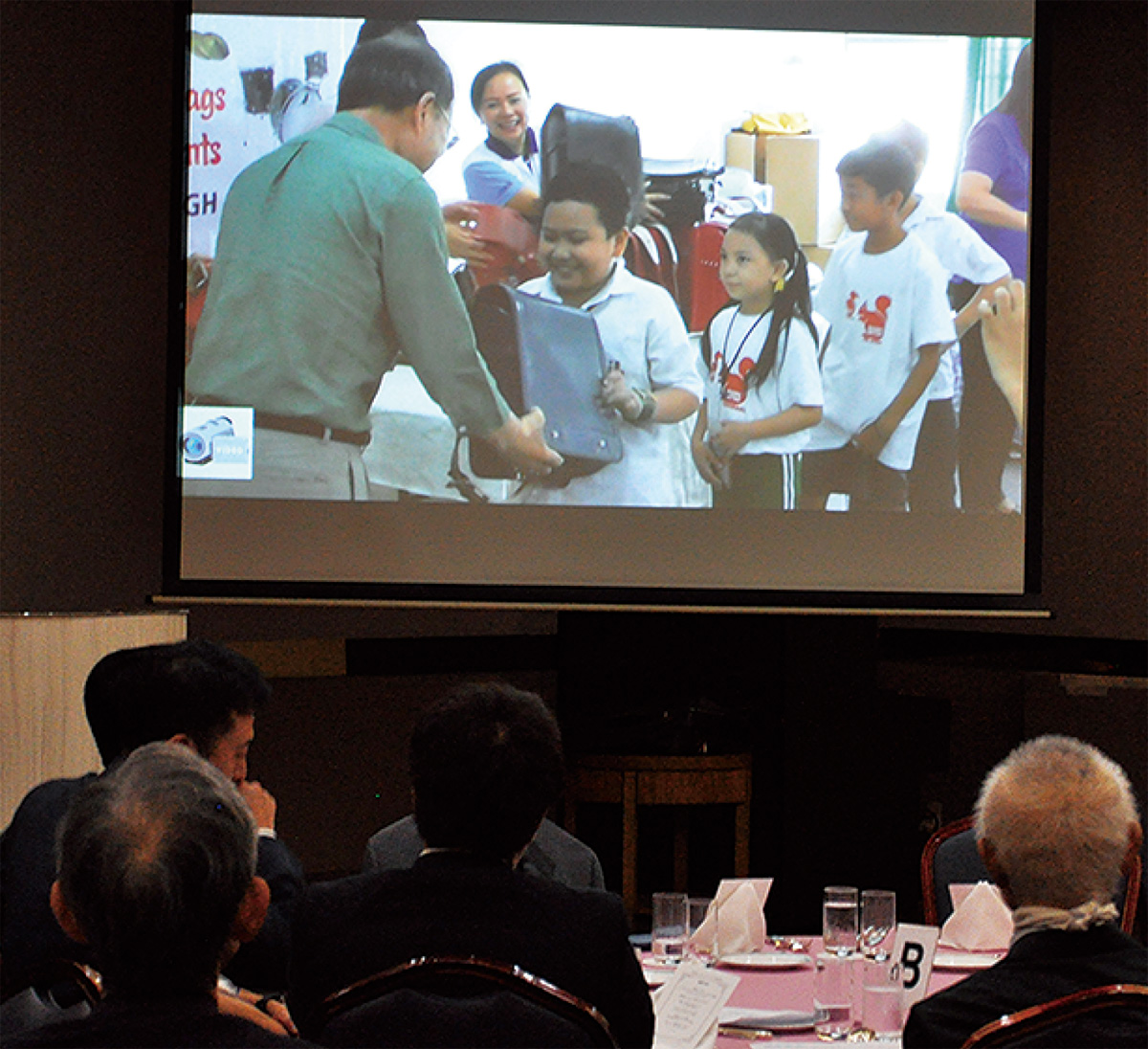 6月末にフィリピンの小学校を訪問し、児童らにランドセルを贈呈した東京町田・中ロータリークラブ(大貫良道会長)の納涼例会が8月27日に市内ホテルで行われ、フィリピン訪問団メンバーが「空飛ぶランドセル」の報告会を行った。