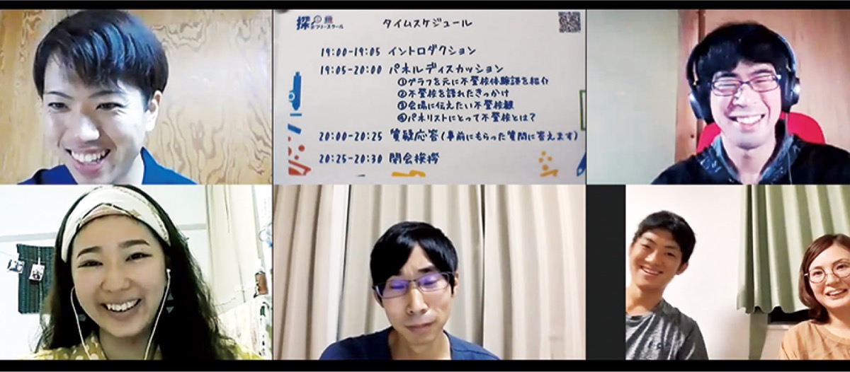 市内でフリースクール・マチラボを運営する広田悠大さん。コロナ禍において、変則的な年間スケジュールのために心や体に変調をきたしている生徒が多くいると知り、「後がない自分を守るための手段として不登校という選択があるのでは」と考えたという。自身も不登校経験がある広田さんは9月13日にオンラインでのパネルディスカッションを行った=写真。パネリスト6人それぞれが過去の経験や現状を話し、全国から参加した89人が、不登校という背景を持っていても社会的な自立ができるということを知る機会となった。「地域に不登校の受け皿もあること伝えていきたい」