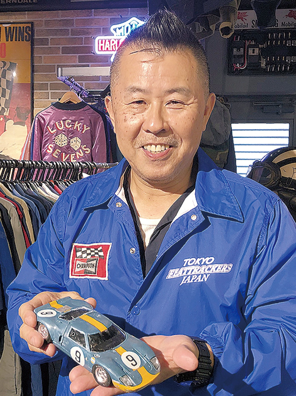 金森にあるシェルビーズNo.20の奥山雅巳さんは、生涯の宝物となる一台を手に入れた。それは店内に佇む愛車のフォードGT40と同じ形のプラモデルだ。