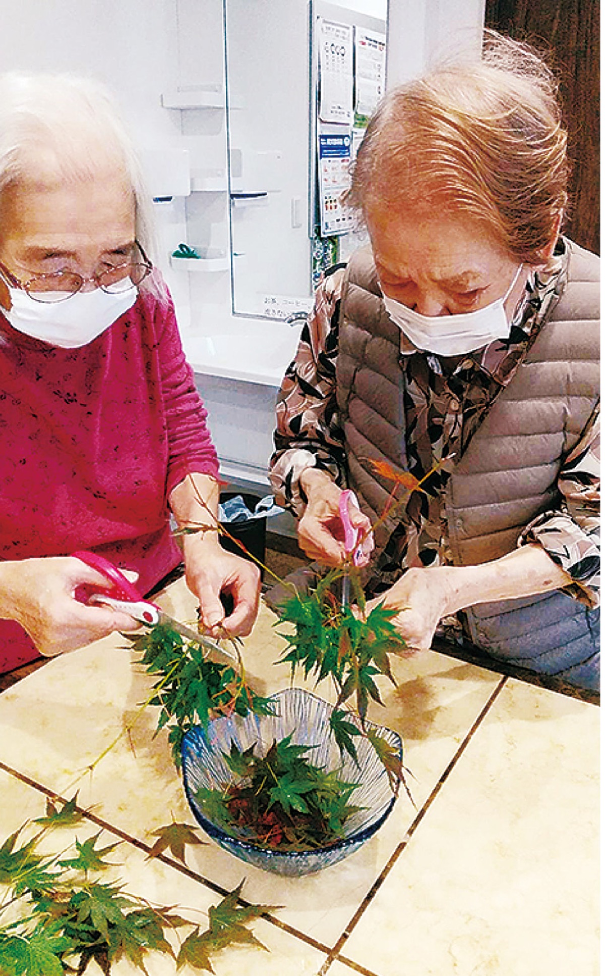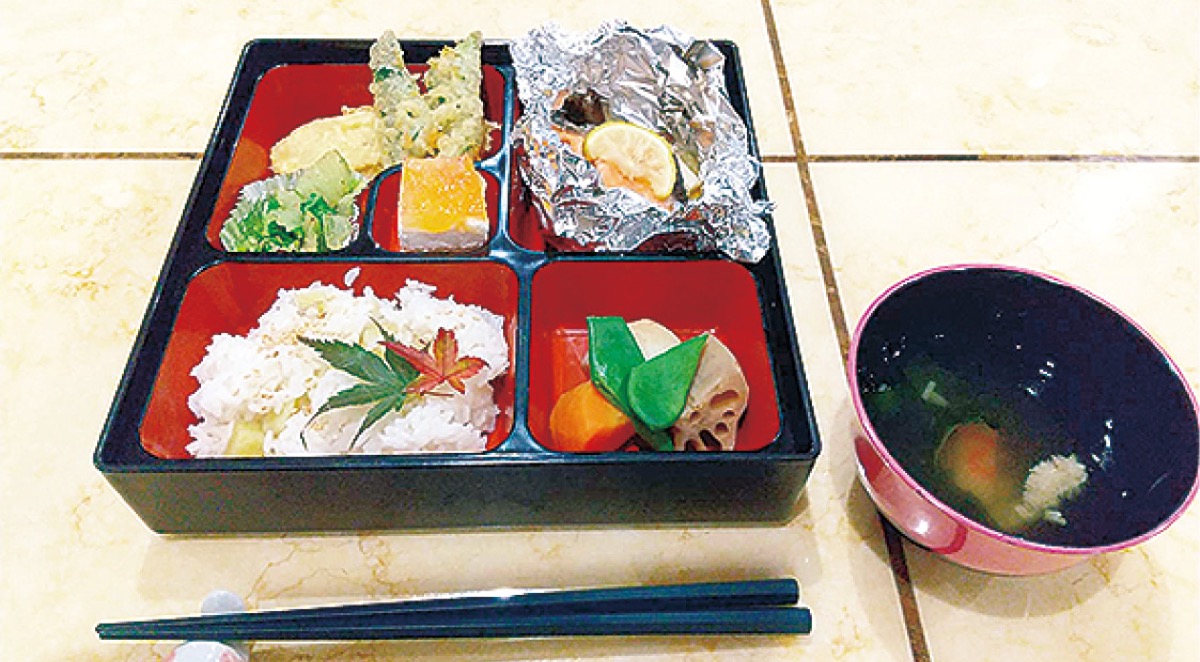入居者にとって食事は楽しみの一つ。コロナ禍で、月に一度のバイキングができなくなったことから、運営する(福)嘉祥会では同御膳を考案。彌晴美理事は「お重は蓋を取った時に目で楽しめて、そして味も楽しんでもらえる」と意図を話す。地元農家が作ったサツマイモやレンコン、サトイモなどが柔らかく、食べやすく調理され、入居者たちは秋の味覚を満喫。入居者の一人は「とてもおいしかった。今日は何のお祝いだったかしら」と喜んでいた。