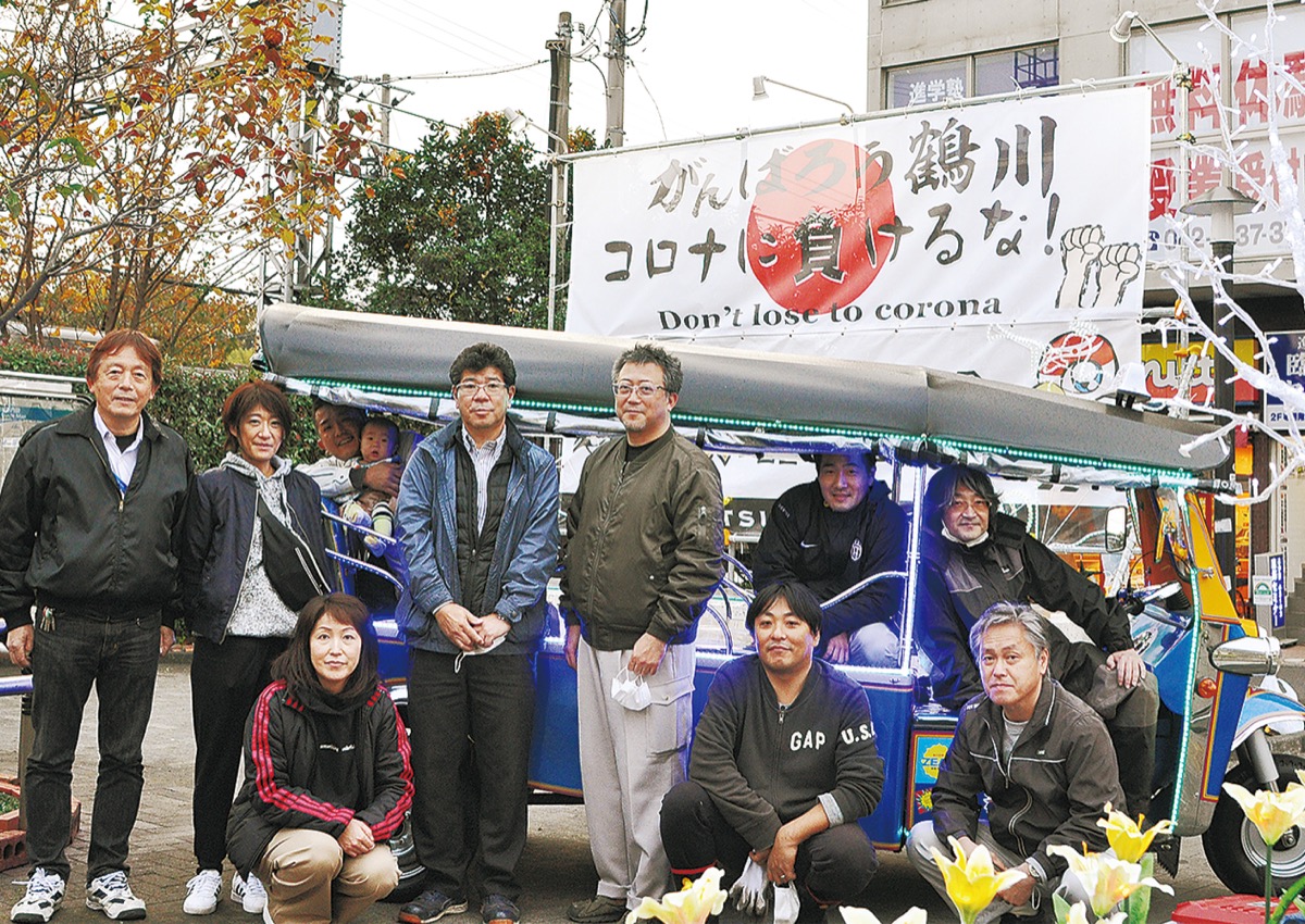 またステージには「がんばろう鶴川 コロナに負けるな!」と書かれた横断幕が商店会の幕とあわせて掲げられている。