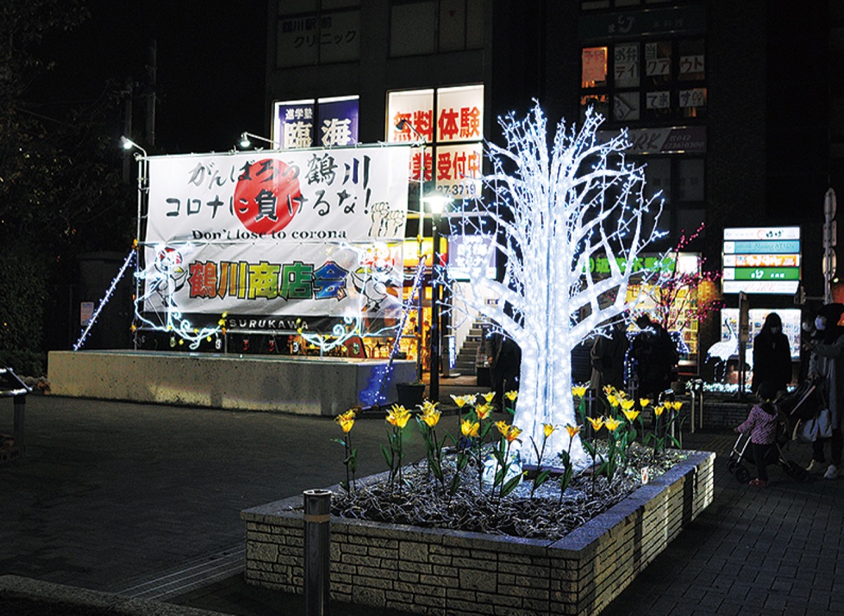小田急線鶴川駅北口そばにある鶴川駅前やすらぎ公園で11月24日、クリスマスイルミネーションが点灯した。