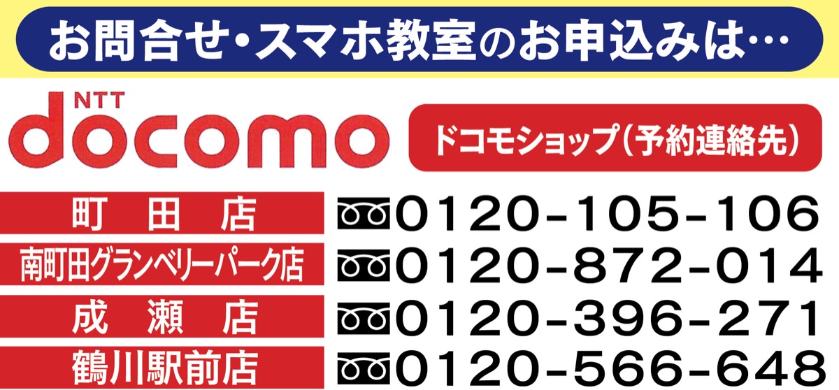 市内のドコモショップ4店(町田店、南町田グランベリーパーク店、成瀬店、鶴川駅前店)では既存の折り畳み式携帯電話(ガラケー)などからスマホへの切り替え、機種変更を進めている。「お気軽にご相談ください」と各店スタッフ。