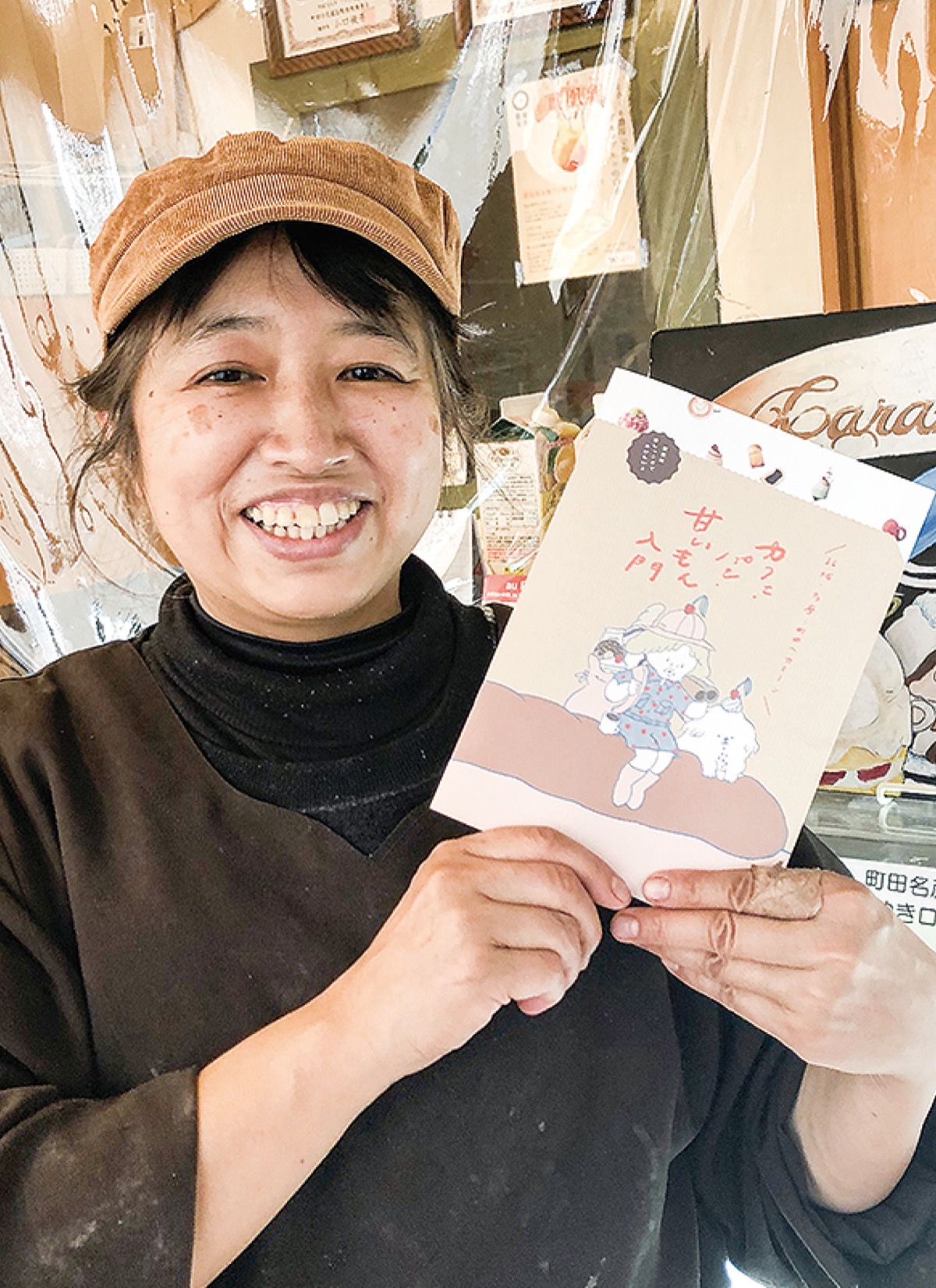 タイトルの「稲城・多摩・町田へカモーン カフェ・パン・甘いもん入門」にちなみ、各市の人気の商品を紹介。