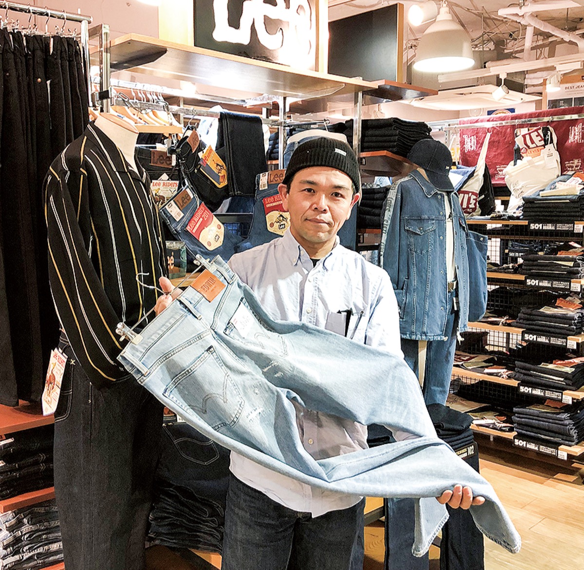 「会社としてぎりぎりまで考え、苦渋の決断でした」と話す店舗運営部の大和田宏部長(48)はジーンズ好きが高じてアルバイトとして18歳で入社し、勤続30年になる。バブル期には市内外から人が押し寄せ、ジーンズが今の5倍を超える1日100本以上売れたという伝説的な話を先輩社員から聞いた。取り扱うメーカーの種類の多さや豊富な在庫は近隣では随一だった同店。大和田部長もケミカル加工やスキニーなど、時代によって変わる流行の遍歴を見てきた。「ジーンズに詳しいスタッフがいたので、スタッフを指名して買い物に来る人もいました」と昔を懐かしむ。