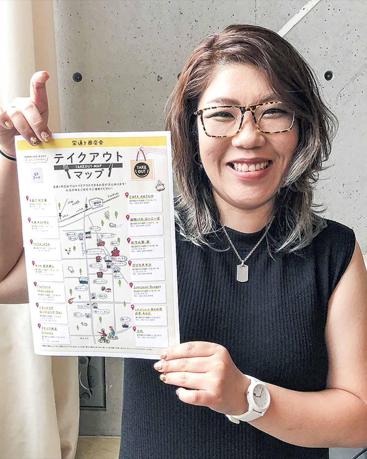 「コロナ禍でテイクアウトを始めた店も増えた。商店会としてできることをしてあげたかった」と園田会長。飲食店のテイクアウト事業に特化した助成金を申請し、テイクアウトマップづくりを始めたのは今年に入ってからだ。作成にあたっては同じ商店会に加盟し、地元をよく知るデザイン事務所が請け負った。担当した株式会社Area87のクリエイティブディレクター、中村愛さんは「栄通り商店会にはジャンルもさまざまで魅力的な飲食店が多い。1店、1店を回り、顔を見て話ができたのがよかった」と話した。