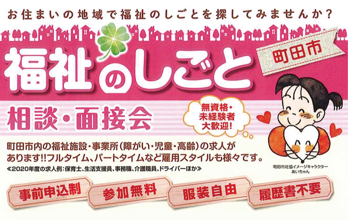 (福)町田市社会福祉協議会が9月25日(土)、もっと福祉の仕事を知って欲しいと町田市民フォーラム4階で「福祉のしごと」相談・面接会を開く。第1部 11時〜13時半、第2部 14時〜16時半の二部制(完全入替制※出展法人は同一)。