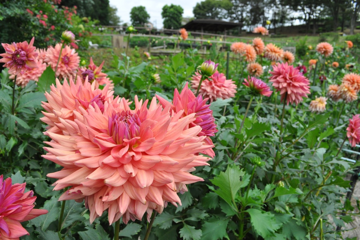 関東以西で最大級、約15000平方メートルの敷地に500種4000株のダリアが植えられている同園。
