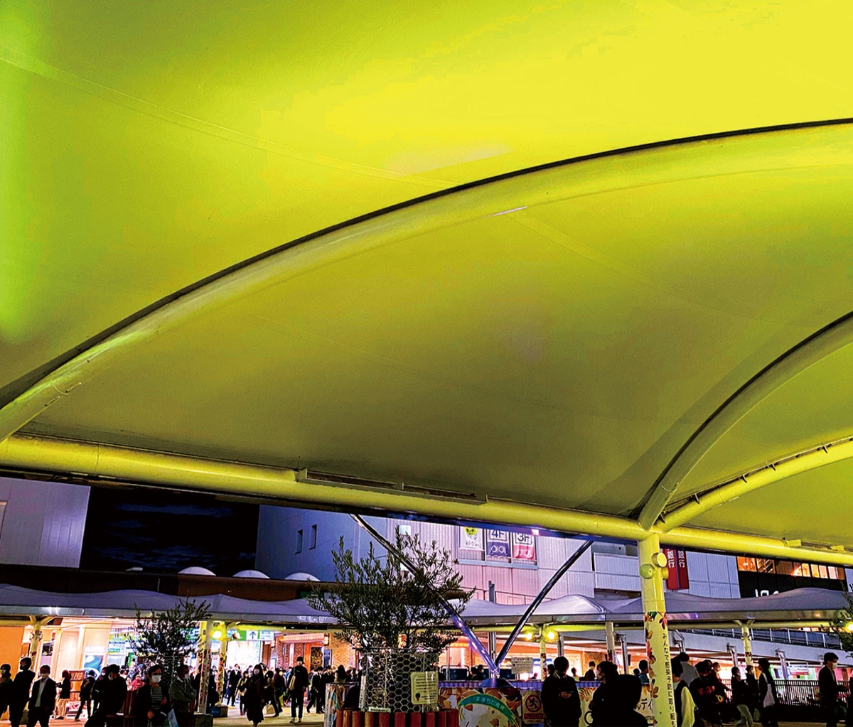 市の玄関口を彩るJR町田駅前ペデストリアンデッキのライトアップが11月1日から「黄色」になっている。これはホームタウンチームのペスカドーラ町田(フットサル)のチームカラーで、市のスポーツ振興を図る「町田市スポーツ推進委員」がチームを応援しようと企画したもの。まちづくりの一環で同デッキの装飾を行っている中対協(町田市中央地区商業振興対策協議会)が協力。併せてのぼり旗も設置された。