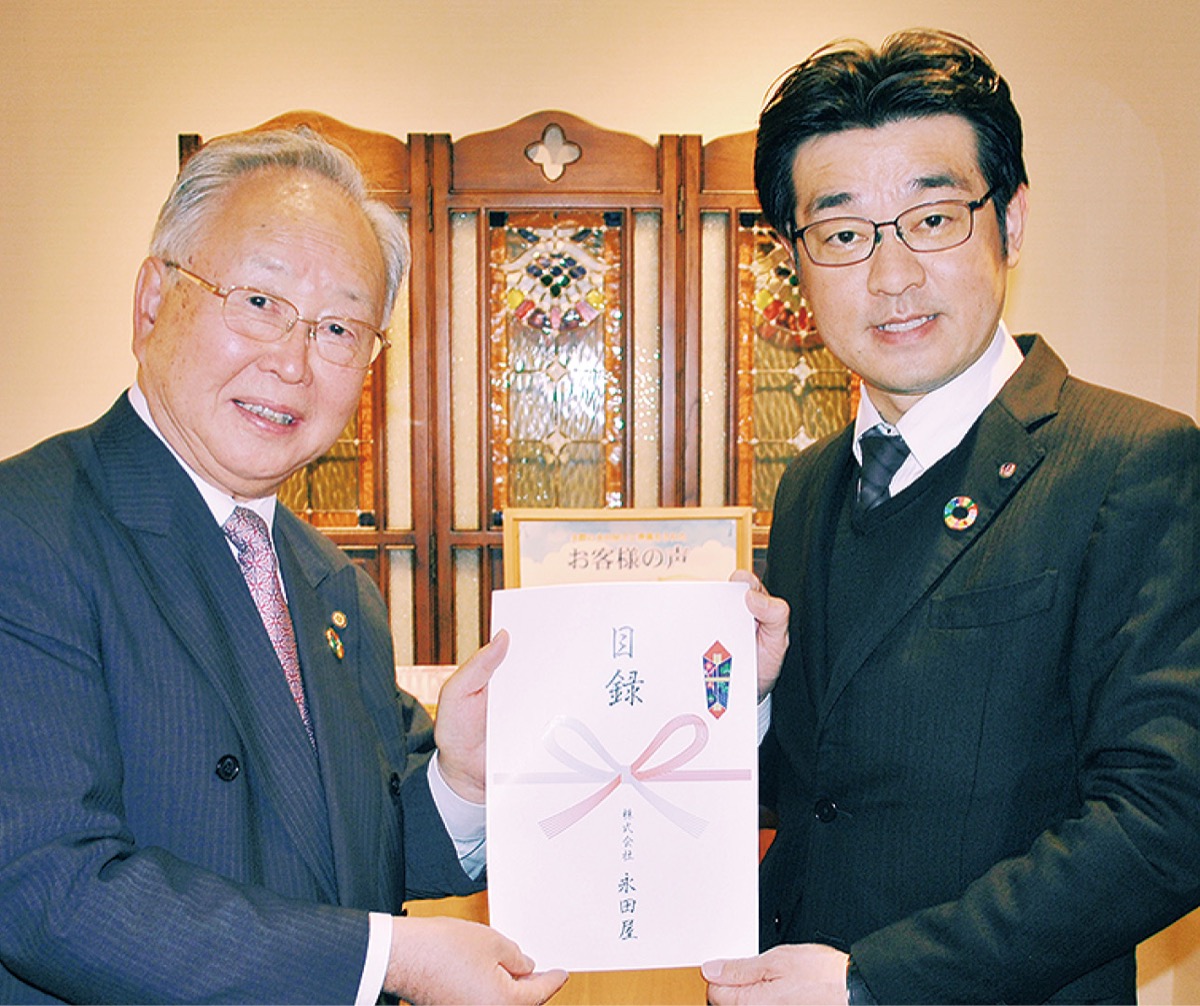 (株)永田屋は12月9日、永田屋本社(相模原市緑区)で、町田市社会福祉協議会に10万8373円を寄付した。これは、同社が11月21日、小さな家族葬ハウスⓇ町田木曽で行った人形供養祭の供養料をあてたもの。
