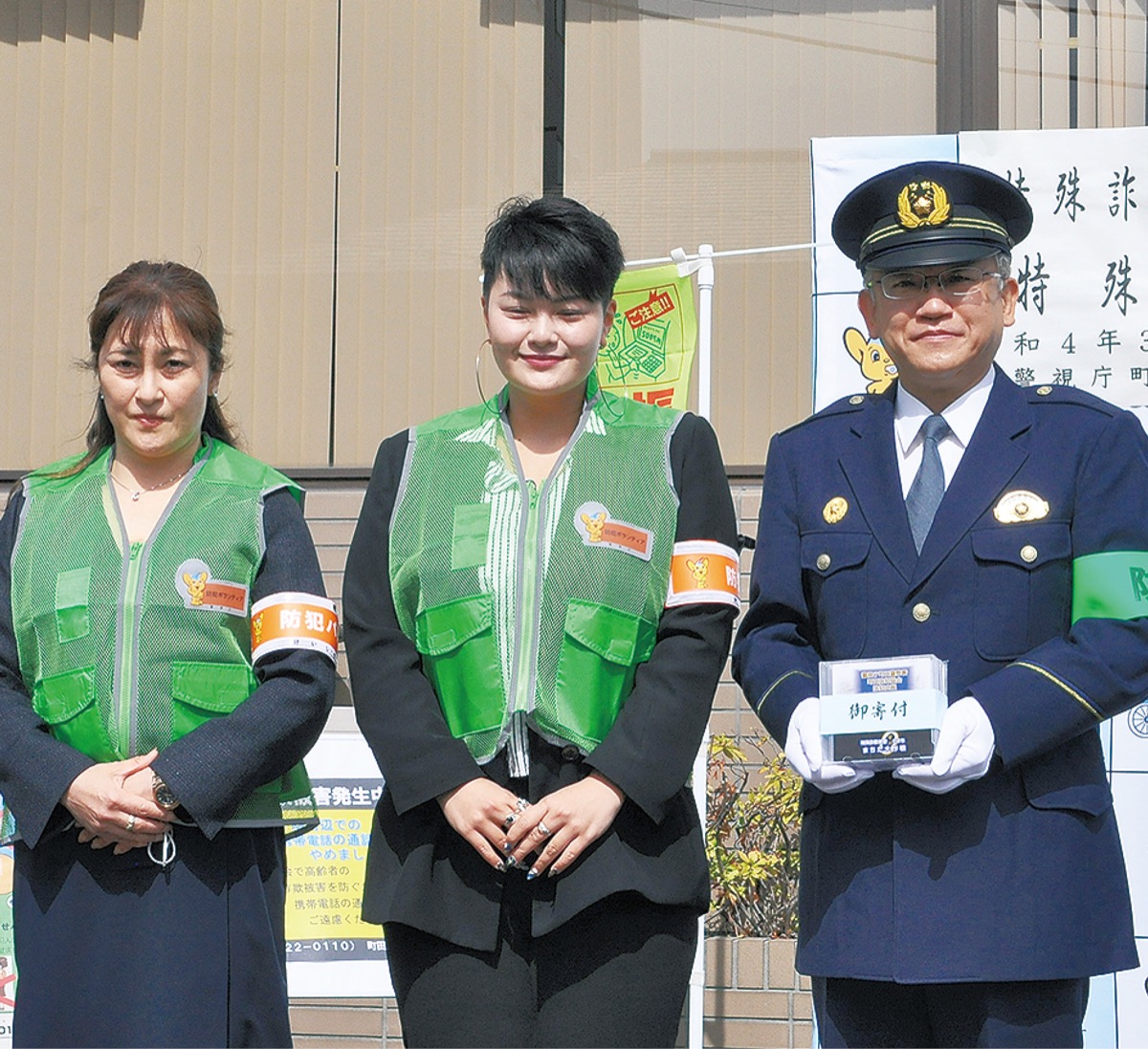 CDを寄贈された町田警察署は3月23日、彩ショルさんと所属事務所の合同会社Office美絵(よしえ)代表、町田駅周辺の商店街に音声を流す株式会社町田放送宣伝社に対して感謝状を贈呈。同時にCDを使用する青パトなど特殊詐欺被害0(ゼロ)カーの出発式を実施した。