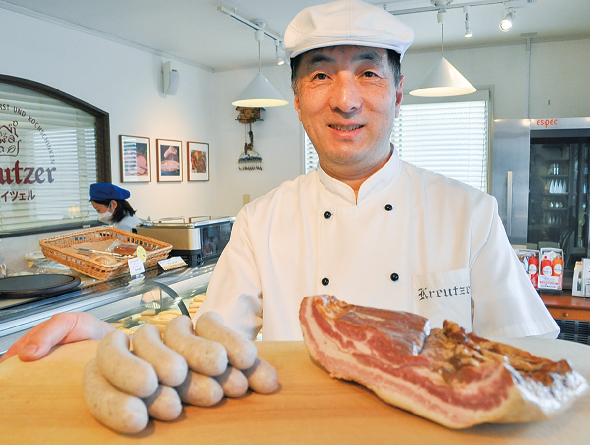 免疫力を高めるといわれる発酵食品。ドイツ製法手づくりハム・ソーセージの専門店クロイツェル(成瀬台2の16の2)はこのほど、宮崎県の醤油・味噌専門メーカーと共同開発した「発酵無添加ソーセージ・ベーコン」の販売を開始した。発色剤や決着剤などは使わず、麹菌で発酵させた豚肉を調理・加熱して仕上げた商品で、店主の吉岡学さんは「考案から7、8年。日本では初めての商品化だと思います」と意気込む。