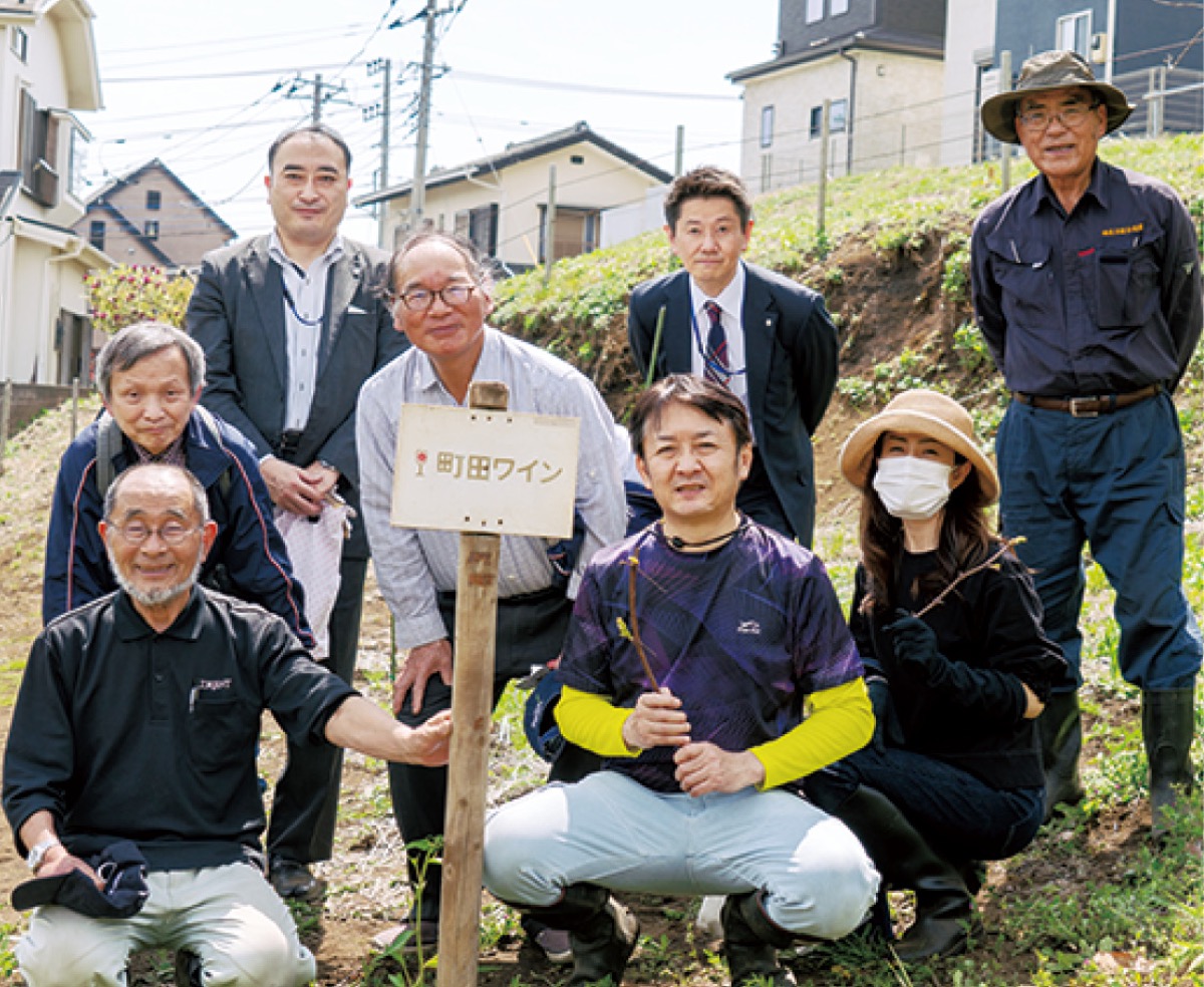 「ブドウ畑やワイナリーの見学、栽培・収穫、醸造を地元発信で気軽に体験できるように」と、4、5年後の収穫を目指して昨年スタートした「まちだぶどうづくり・ワインプロジェクト」。国内で生産されたブドウで醸造される「日本ワイン」造りにこだわる町田ワイン(玉川学園)の渡辺文久代表が、山梨県勝沼の白百合醸造の協力のもと、町田市や町田商工会議所、地元の人たちからのサポートを受け発足。本町田に設けられた2つの栽培畑で町田産ワイン用のブドウを栽培している。