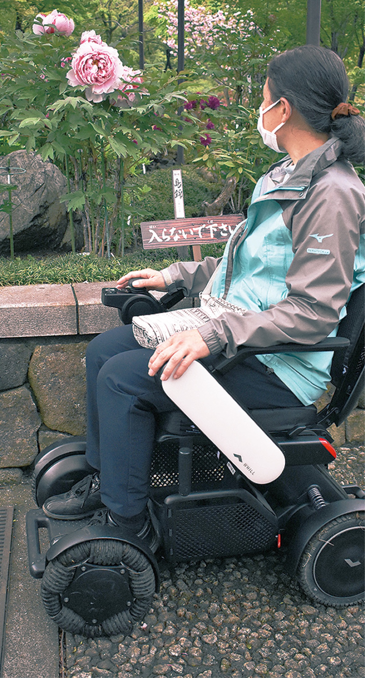 夫婦で訪れ、電動車いすを利用した男性(80)は「ゆったり進んでいい。高さもぼたんを見るのにちょうどよい。自分の好きなところに向かっていけるので面白いし、歩くより楽ですね」と話した。
