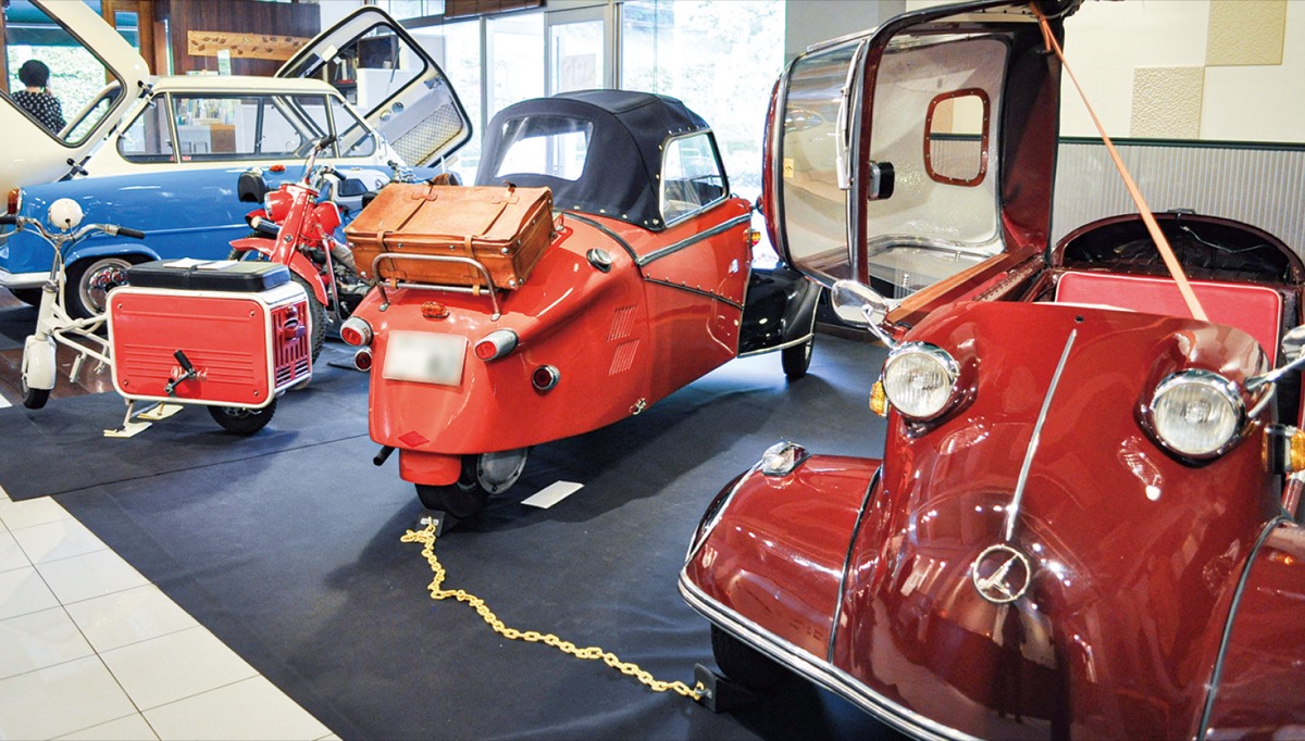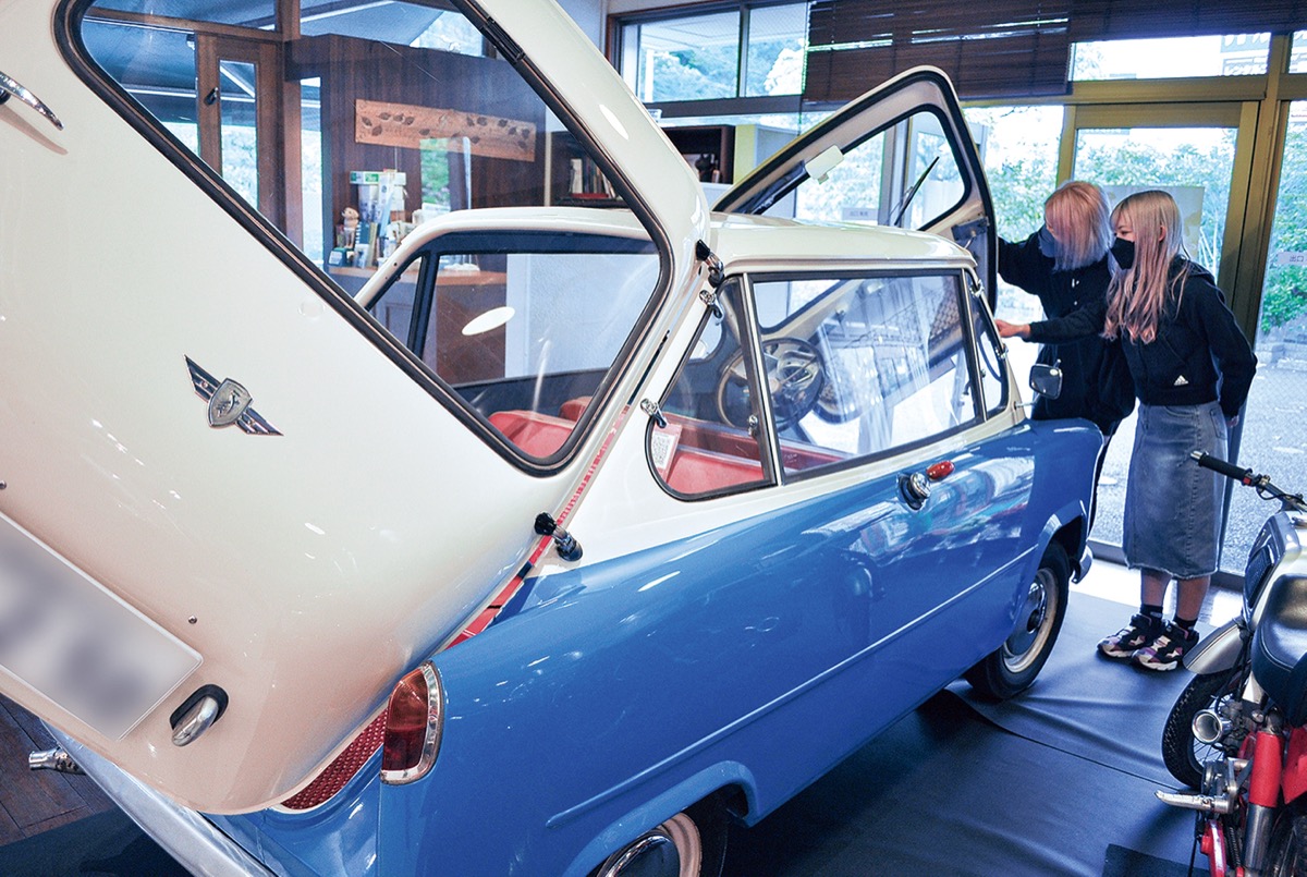 ツェンダップ・ヤヌス250は第二次世界大戦中の軍事バイク製造メーカーが戦後に1年だけ生産した4輪車。生産期間が短く、その後メーカーがなくなったため、現存するのは世界でも数十台。国内登録はこの1台のみという。ほかに、やはり希少車のメッサーシュミットKR200(西ドイツ)も並び、来訪者を楽しませていた。