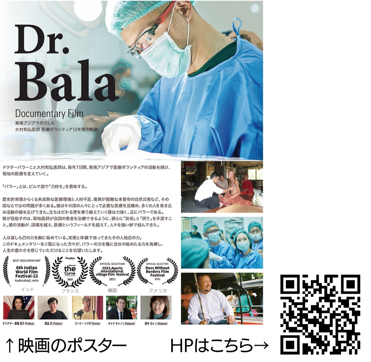 国際医療協力を"趣味"とする町田市出身の医師・大村和弘さんの約12年間の活動を、同じく市内出身の映画監督・コービーシマダさんが撮ったドキュメンタリー映画「Dr・Bala」が現在、フランスやアメリカ、韓国など世界7カ国、9個の映画祭にノミネートされている。その中の一つ、Tokyo Lift-Off Film Festivalで予選を通過し、オンライン一般投票に駒を進めた。5月7日現在で得票数1位となっている。