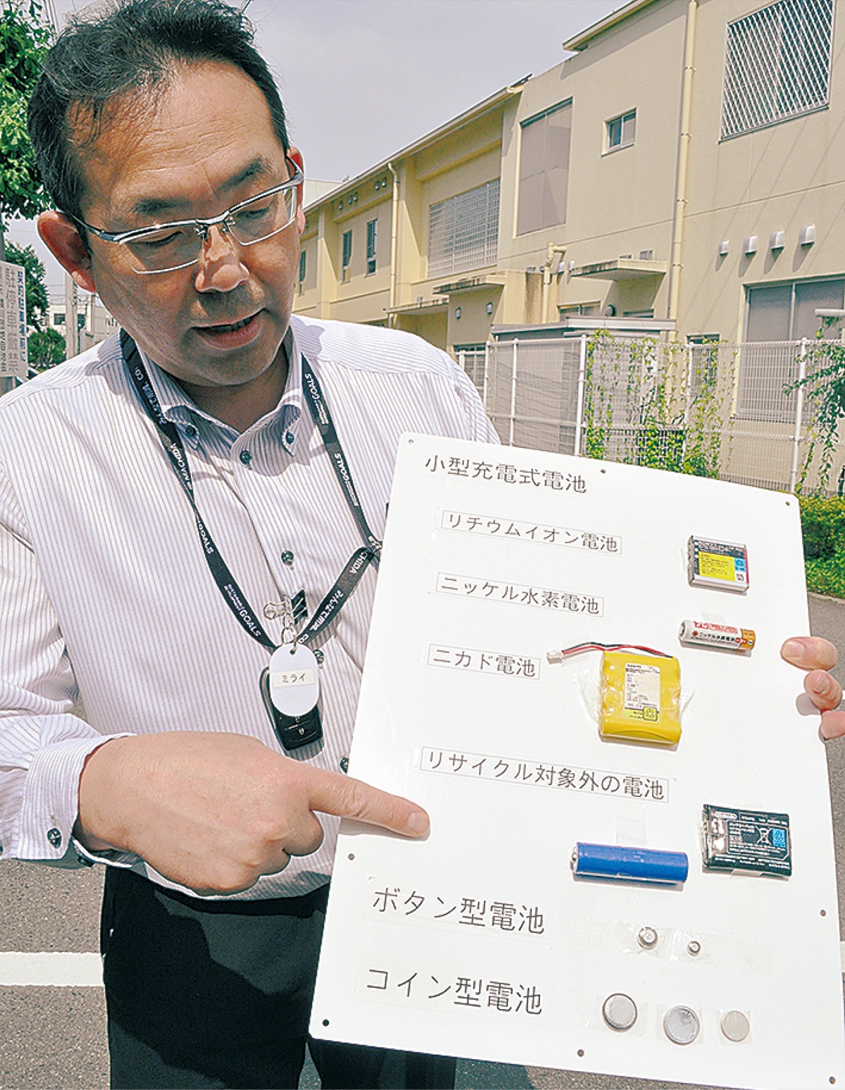 収集した電池は種類ごとに選別し資源化する。電池を取り出すことができない小型家電は、公共施設など市内23カ所に設置した小型家電回収ボックスで回収する。田中課長は「有害ごみの対象や回収日なども分からない人も多い。啓発に力を入れたい」と呼びかける。
