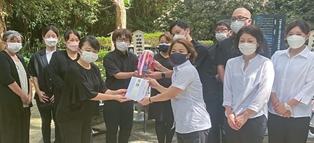 当日は、同店舗などで受付けた寄付金と同社からの合算金額約50万円のほか、千羽鶴などの奉納、献花式を実施。対馬記念館、ひめゆりの塔資料館、白梅乃塔の各所に直接手渡した。各施設は、施設運営や活動資金として活用するという。