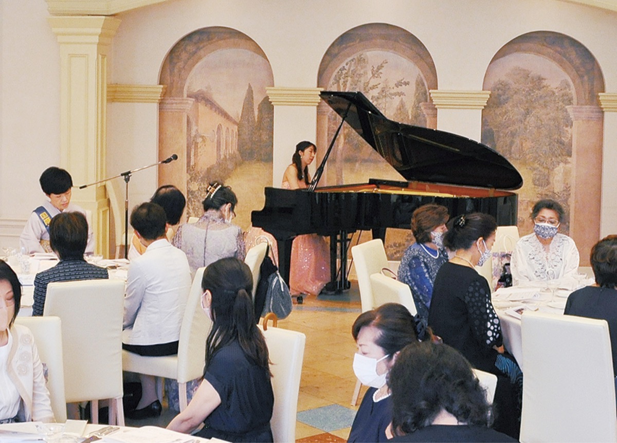 「女性と女児の生活向上」を目的とした国際的な奉仕団体、国際ソロプチミスト町田(柴崎亜紀子会長)は6月22日、大和市つきみ野のレストラン、横浜うかい亭でチャリティーコンサートを開いた。来賓や会員など約80人が参加し、ピアニスト・楠絵里奈さんのコンサートを堪能した。