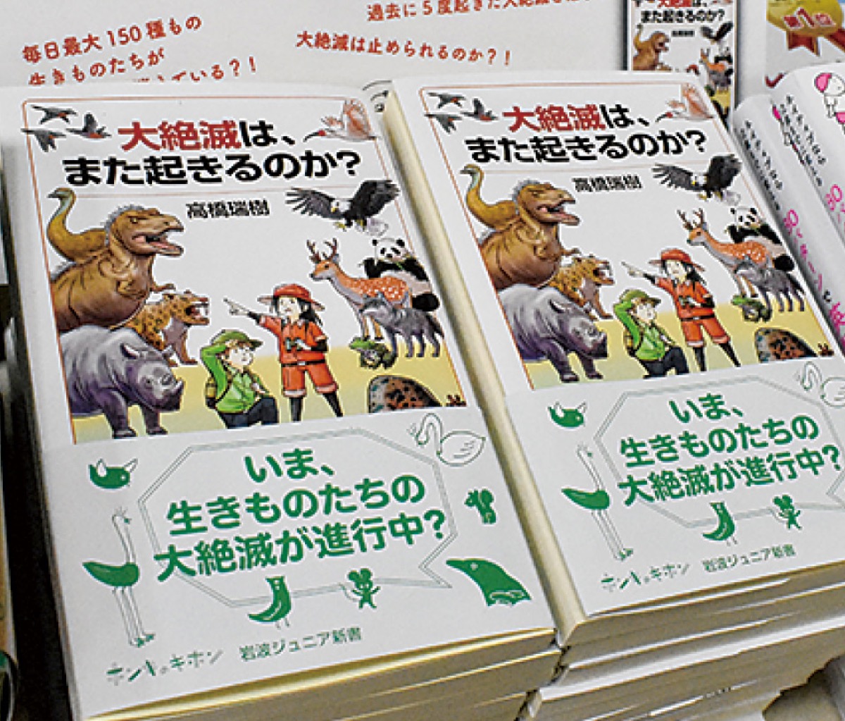 高橋さんは保全生態学が専門で、オオサンショウウオについて研究している科学者の一人。先月、岩波ジュニア新書から『大絶滅は、また起きるのか?』を上梓したのを機に来日していた。この日は「絶滅」をテーマに、オオサンショウウオの生態などを説明。温暖化によって地球上の生き物の絶滅してしまうスピードが加速している現状を訴えた。また、カフェには、高橋さんのゼミ生である2人の大学生もアメリカから参加。生徒たちと英語で交流する場面もあった。